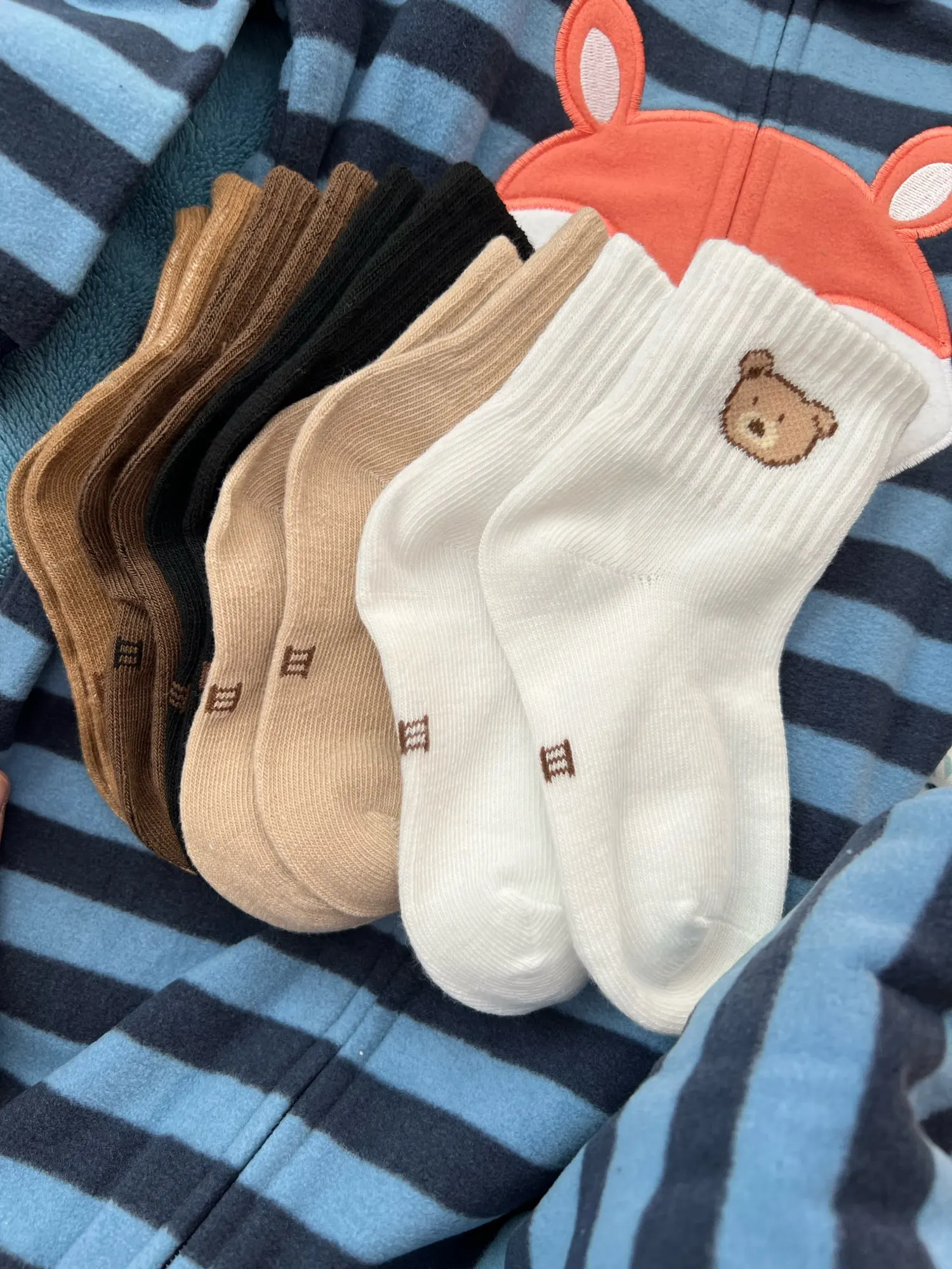 Baby Socks 5-Pack - Soft Cotton with Cartoon Bear Pattern